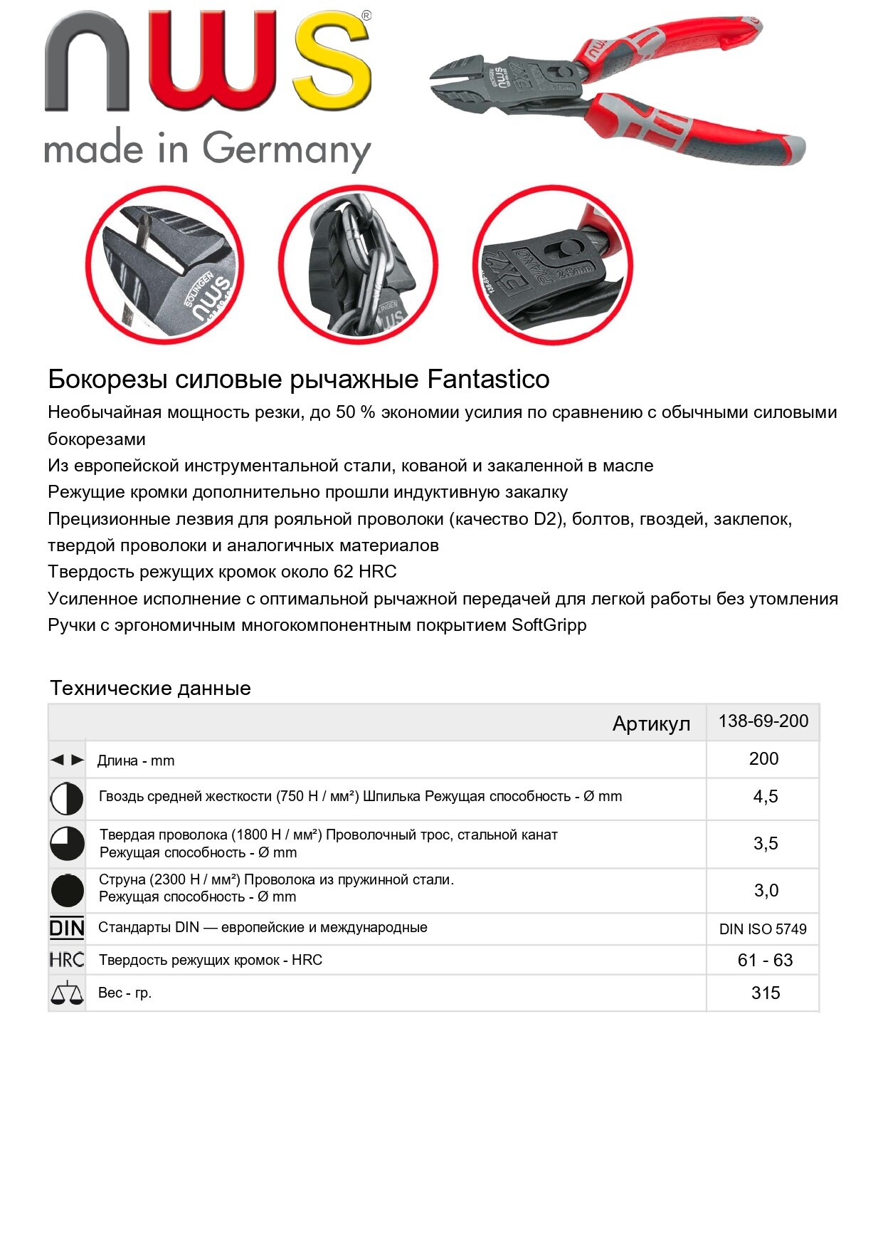 Бокорезы силовые NWS FantasticoPlus 200 мм, покрытие TitanFinish, рукоятки SoftGripp 3K арт.138-69-200 интересное: