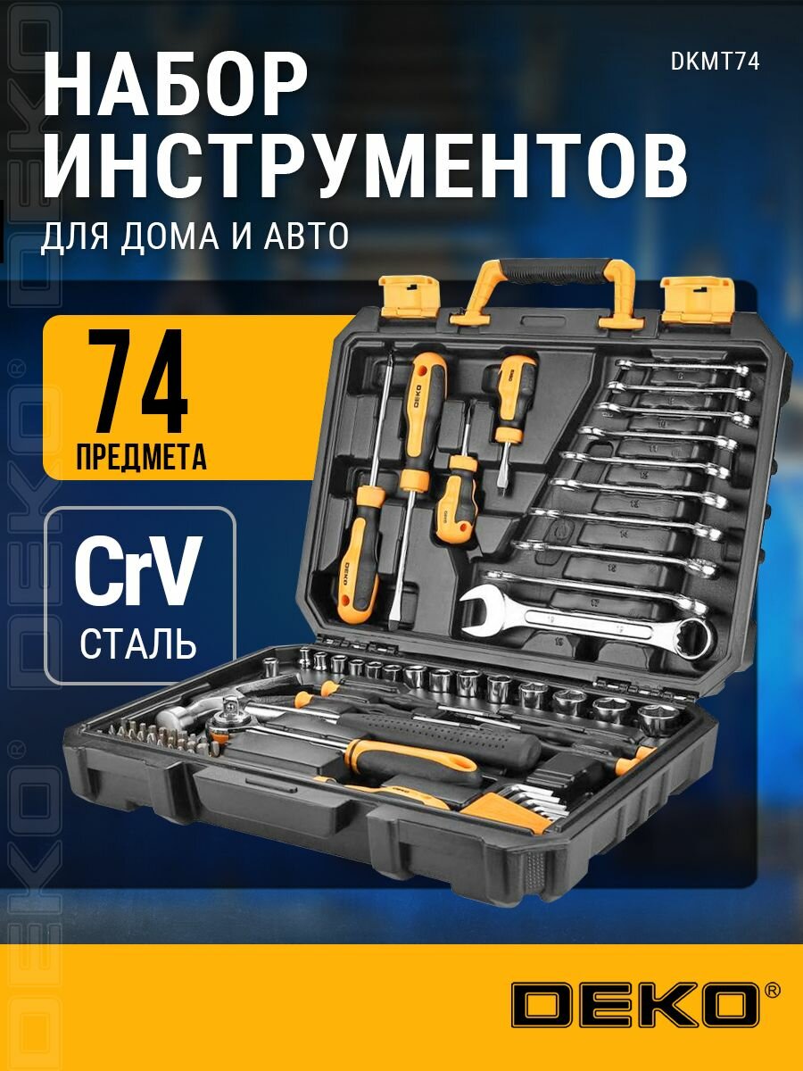 Универсальный набор инструмента для дома и авто в чемодане DEKO DKMT74 (74 предмета) интересное: