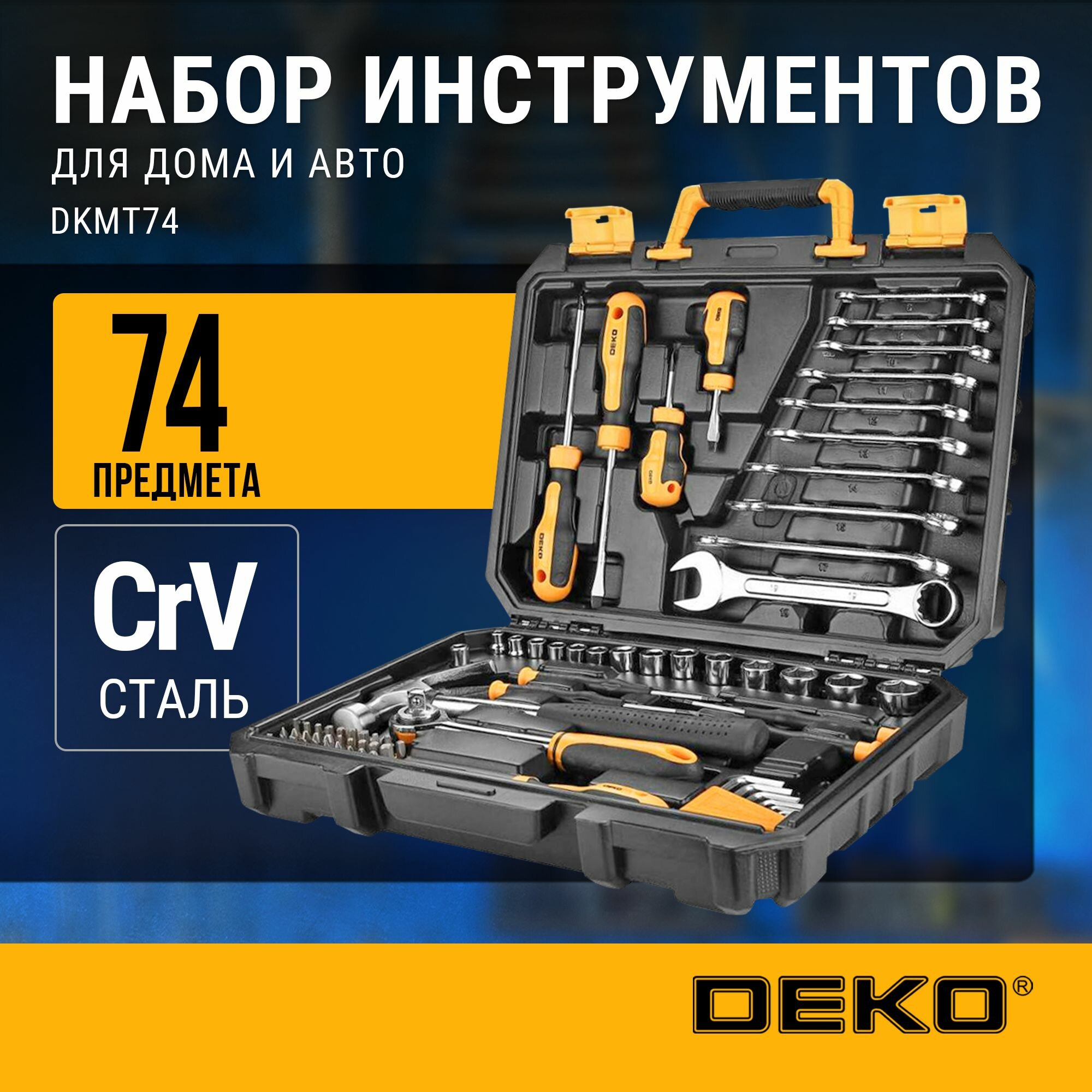 Купить Универсальный набор инструмента для дома и авто в чемодане DEKO DKMT74 (74 предмета)