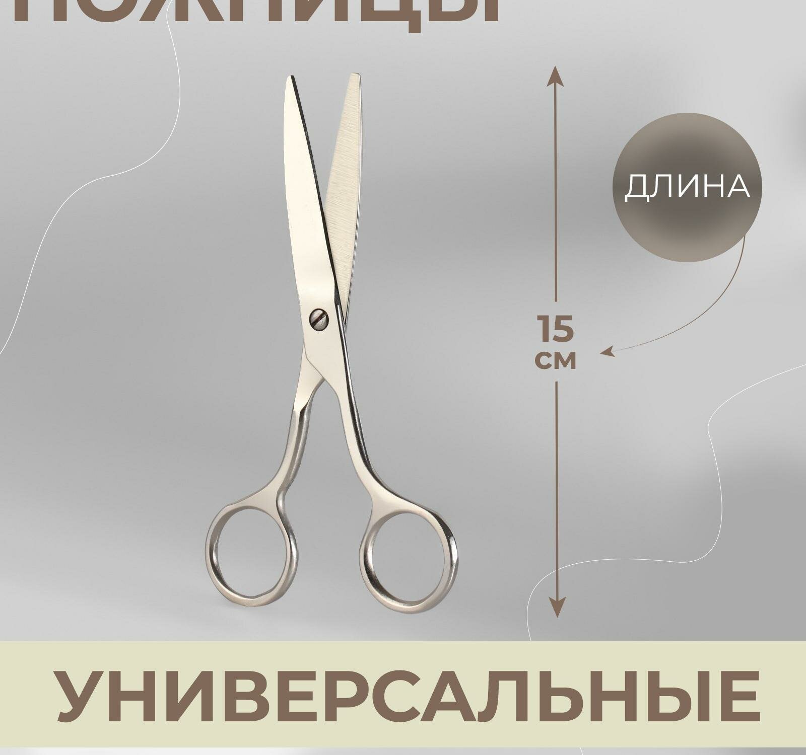 Ножницы универсальные, 5,9", 15 см, цвет серебряный