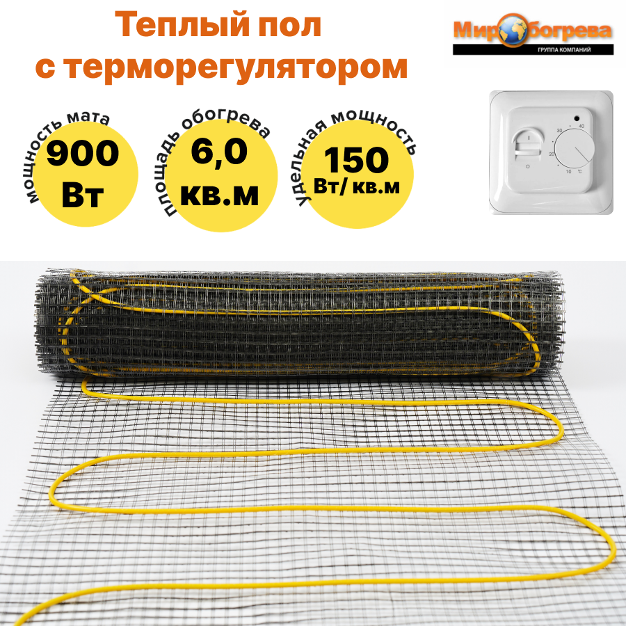 Теплый пол World Heat 3,0 кв м с терморегулятором
