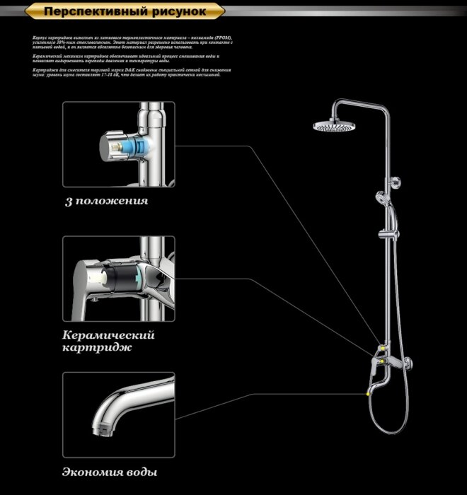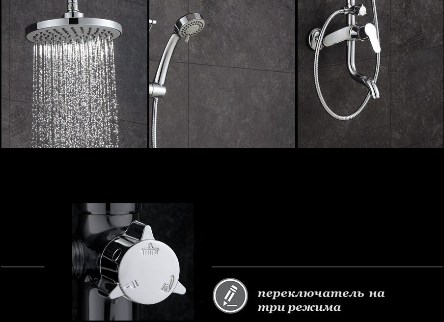 | Отзыв: | Шикарный внешний вид, качественные материалы, хорошая стойка, несколько режимов ручной лейки, тропический душ это нечто. Всё на уровне западных брендов!!! Только нет полочки для мыла и прочего. |