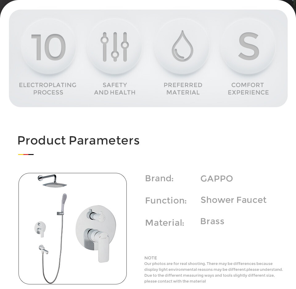 Смеситель GAPPO с тропическим душем в сборе встраиваемый G7148-8 хром-белый