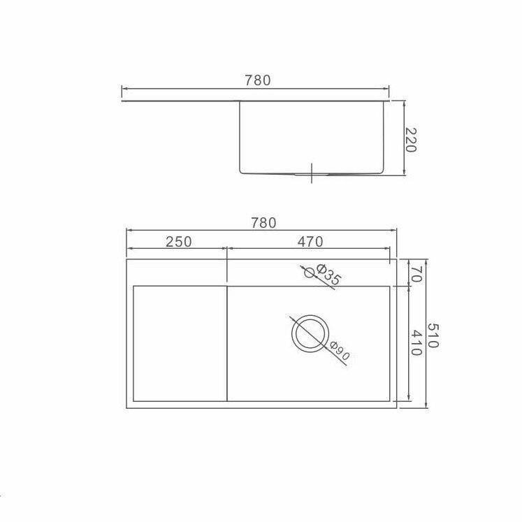 Кухонная мойка премиум 780*510 (1 мм) глубина 22см. нерж. сталь, чаша справа (K37851-R) Gerhans