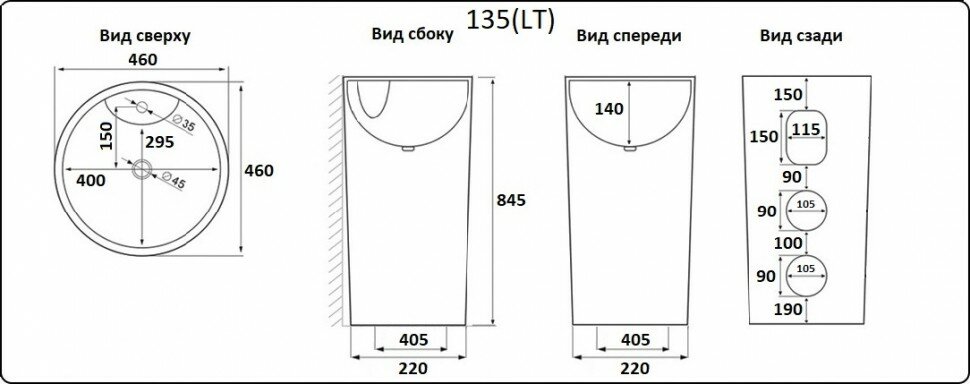 | Число размеченных отверстий под смеситель | отсутствуют |
