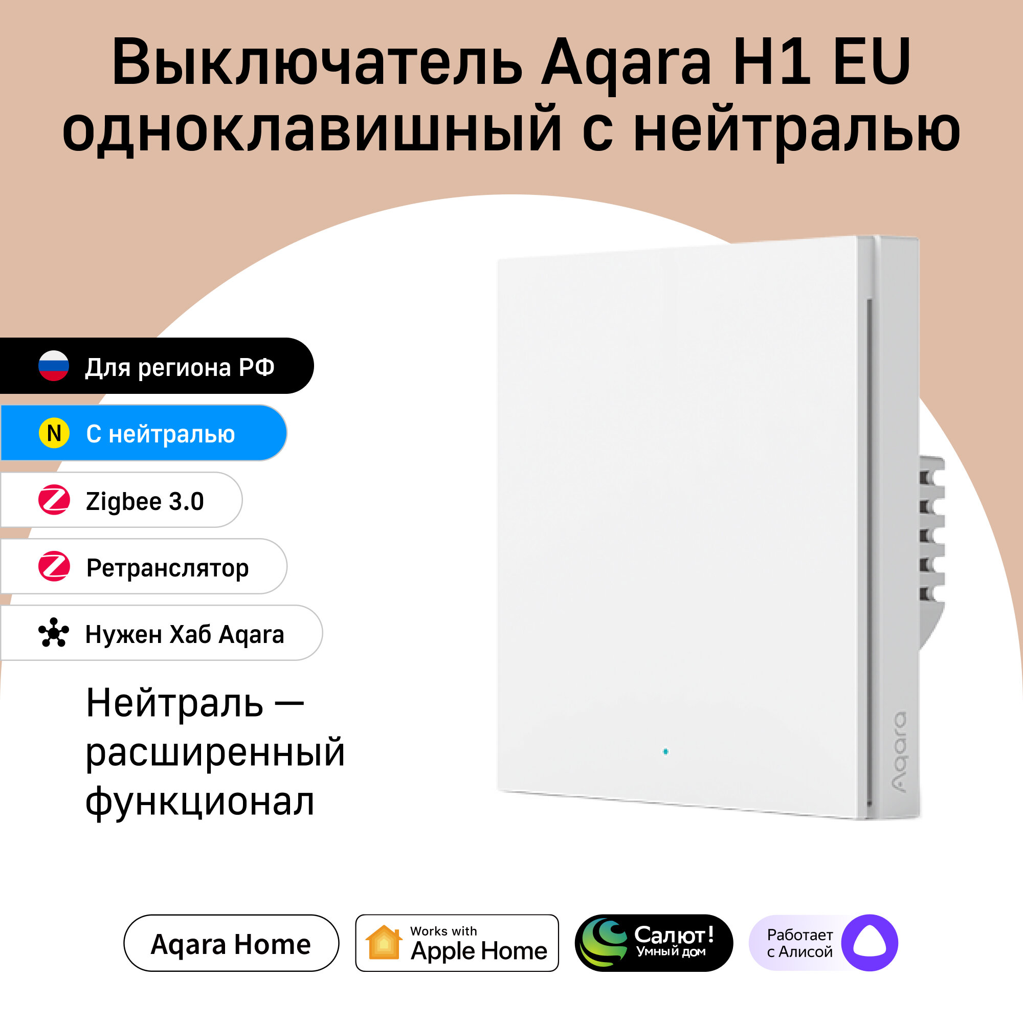 Умный выключатель одноклавишный с нейтралью Aqara H1 WS-EUK03, умный дом, белый