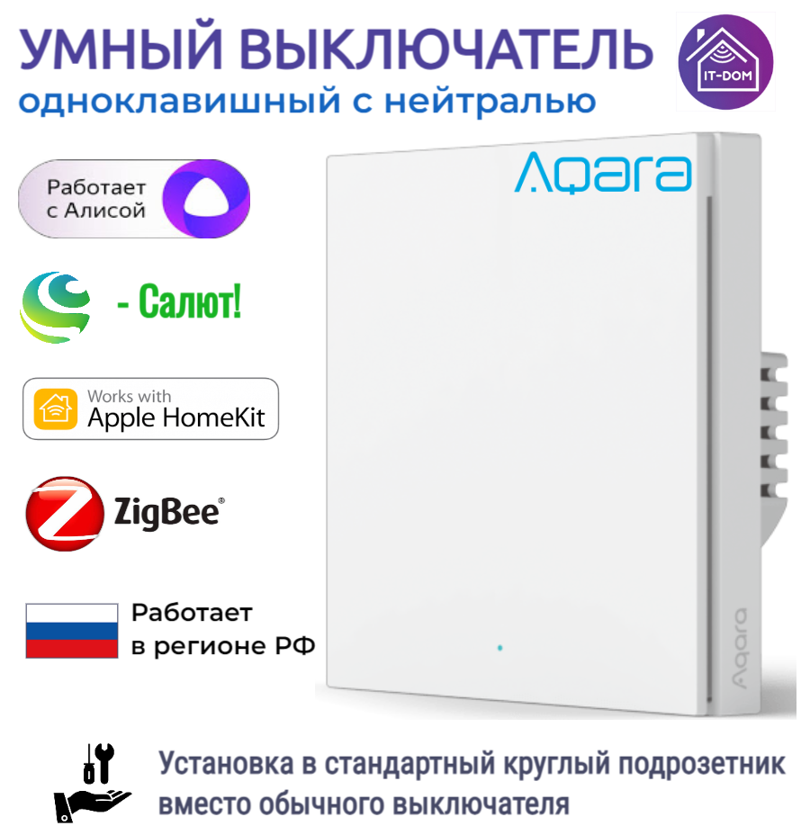 СохранитьУмный выключатель Aqara Smart Wall Switch H1 EU ( Neutral, Single Rocker) (ws-euk03) WS-EUK03 . интересное: