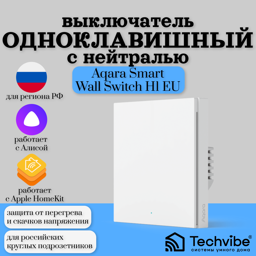 Умный выключатель одноклавишный с нейтралью Aqara H1 WS-EUK03, умный дом, белый