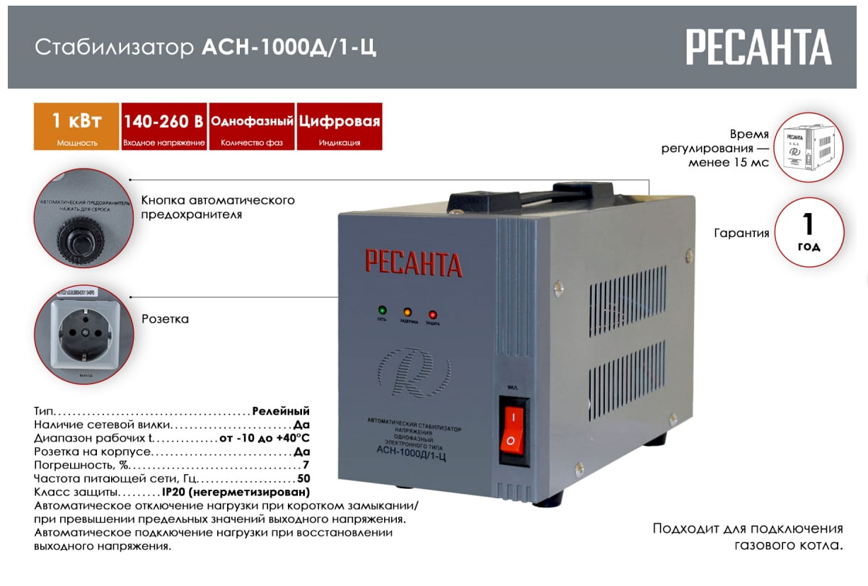 Стабилизатор напряжения однофазный Ресанта АСН-1000Д/1-Ц интересное: