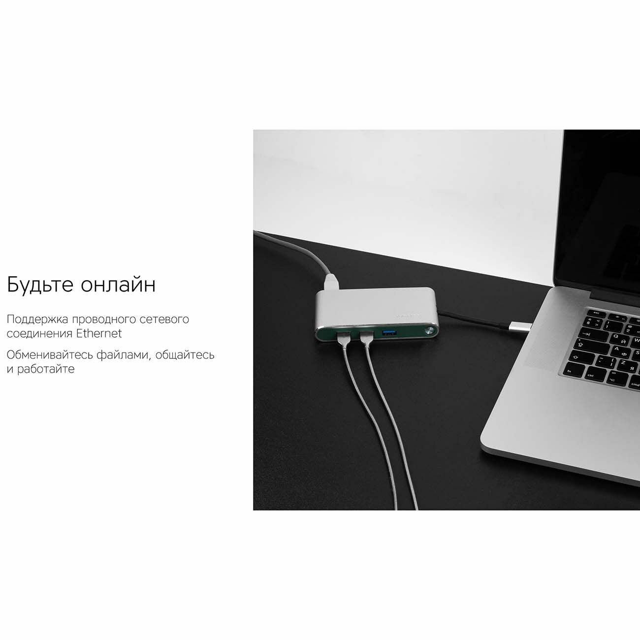 Концентратор Rombica Hermes Green TC-00255 3*USB 3.0, USB Type-C, SD, microSD, HDMI, RJ-45