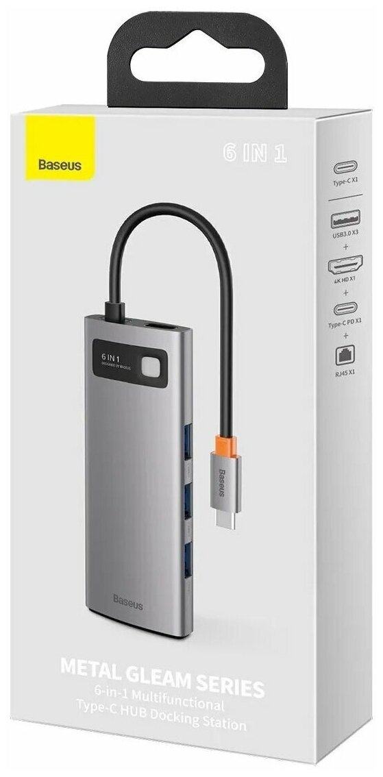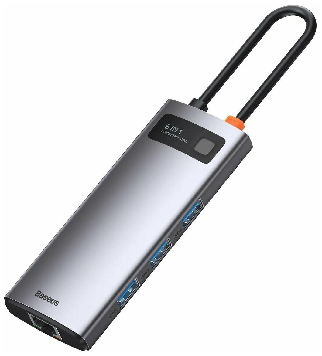 USB-концентратор Хаб Hub Baseus Metal Gleam Series 6 в 1 CAHUB-CW0G (Space Grey) Type-C(PD), HDMI, RJ45, 3xUSB 3.0. интересное: