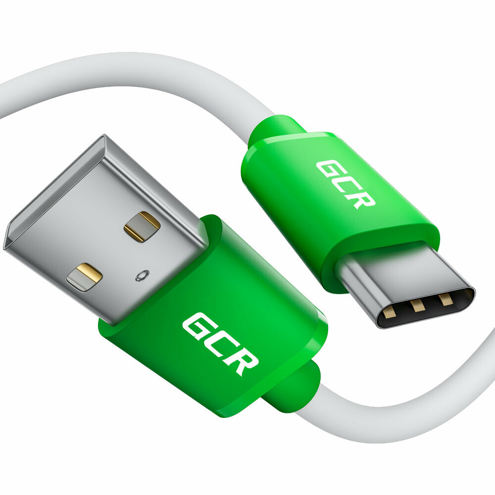 Кабель GCR QC TypeC быстрая зарядка 1.5 м (зеленый TPE, белые коннекторы) (GCR-52495)