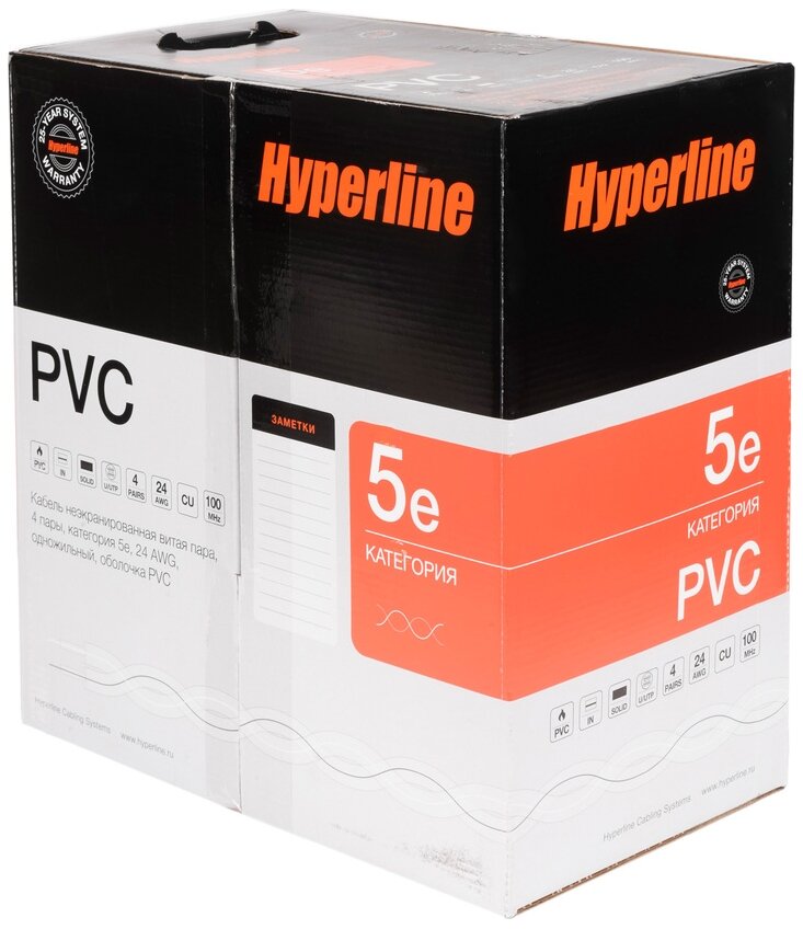 СохранитьКабель UTP Hyperline UUTP4-C5E-S24-IN-PVC-GY-305 305 м (UTP4-C5E-SOLID-GY-305) интересное: