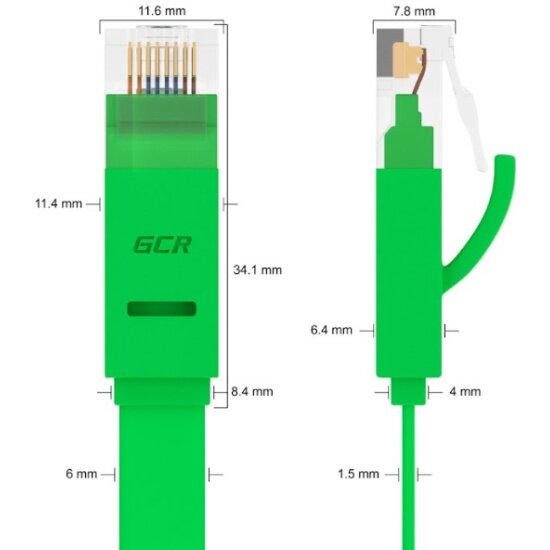 LAN кабель 15м GCR PROF плоский UTP cat.6 10 Гбит/с RJ45 LAN кабель для интернета медный контакты 24K GOLD (GCR-LNC62) зеленый
