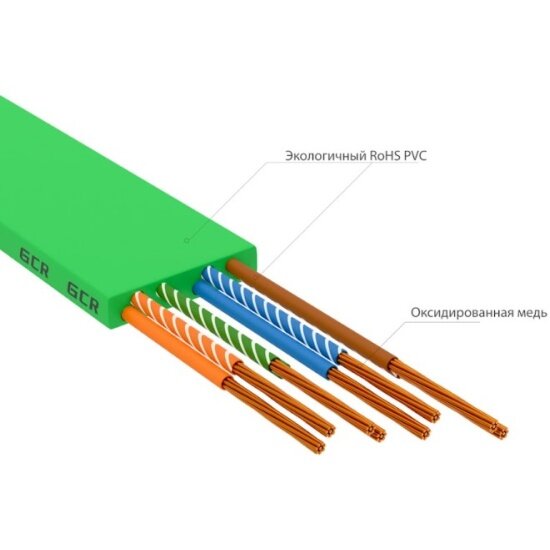 LAN кабель 15м GCR PROF плоский UTP cat.6 10 Гбит/с RJ45 LAN компьютерный кабель для интернета медный контакты 24K GOLD (GCR-LNC62) зеленый
