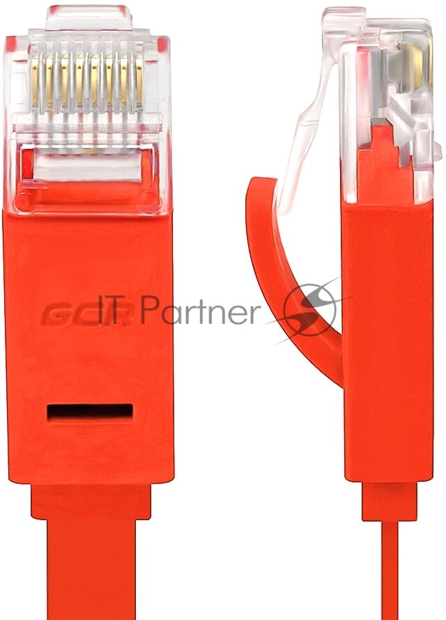 Патч-корд GCR PROF плоский UTP cat.6 10 Гбит/с RJ45 LAN контакты 24K GOLD (GCR-LNC62) красный 1.0м