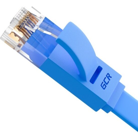 Кабель для интернета GCR PROF плоский UTP cat.6 10 Гбит/с RJ45 LAN медный контакты 24K GOLD (GCR-LNC62) синий 3.0м