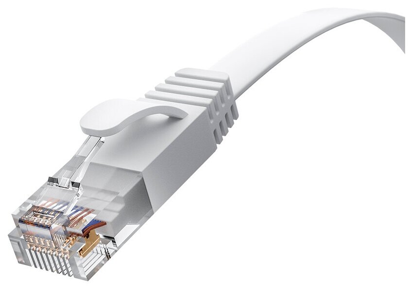 GCR Патч-корд PROF плоский прямой 1.0m, UTP медь кат.6, белый, 30 AWG, ethernet high speed 10 Гбит/с, RJ45, T568B, GCR-52847