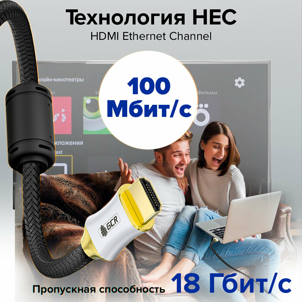 Провод для интернета PROF плоский UTP cat.6 10 Гбит/с RJ45 LAN контакты 24K GOLD (GCR-LNC62) черный 2.0м