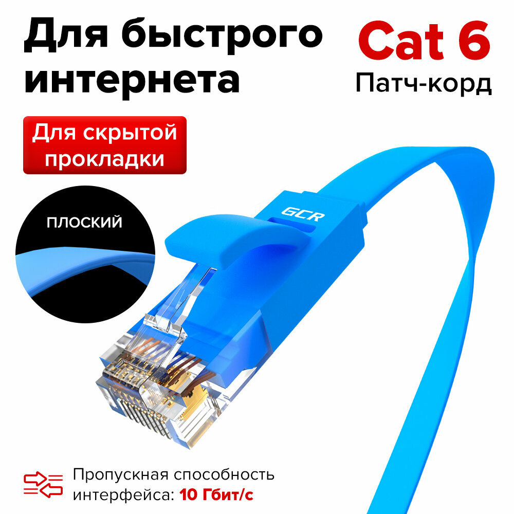 Кабель для интернета GCR PROF плоский UTP cat.6 10 Гбит/с RJ45 LAN медный контакты 24K GOLD (GCR-LNC62) синий 3.0м