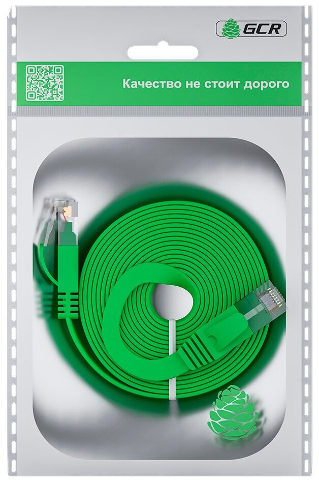 СохранитьGCR Патч-корд PROF плоский прямой 15.0m, UTP медь кат.6, зеленый, 30 AWG, ethernet high speed 10 Гбит/с, RJ45, T568B интересное: