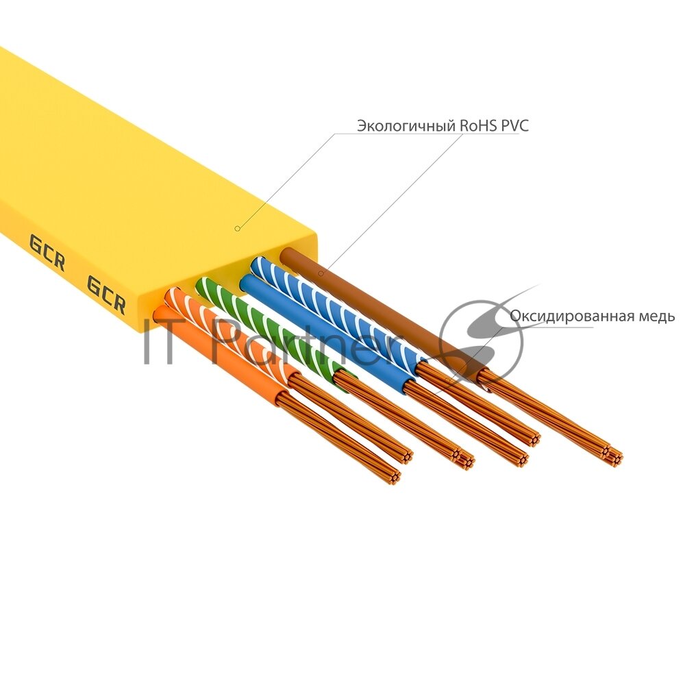 Патч-корд плоский 15 метров кабель для интернета GCR PRO КАТ.6 ethernet high speed 10 Гбит/с желтый