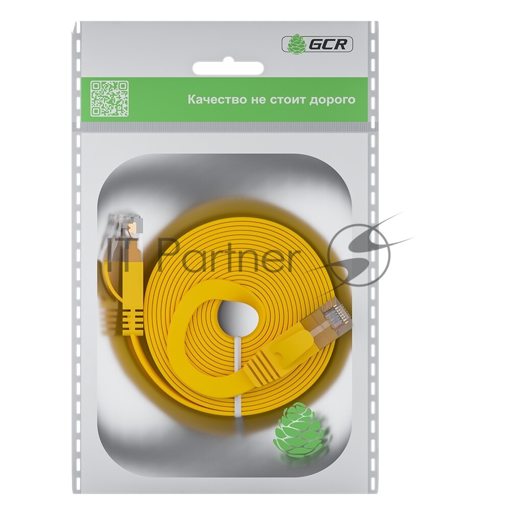 GCR Патч-корд PROF плоский прямой 1.5m, UTP медь кат.6, желтый, 30 AWG, ethernet high speed 10 Гбит/с, RJ45, T568B, GCR-52824 Greenconnect GCR-52824