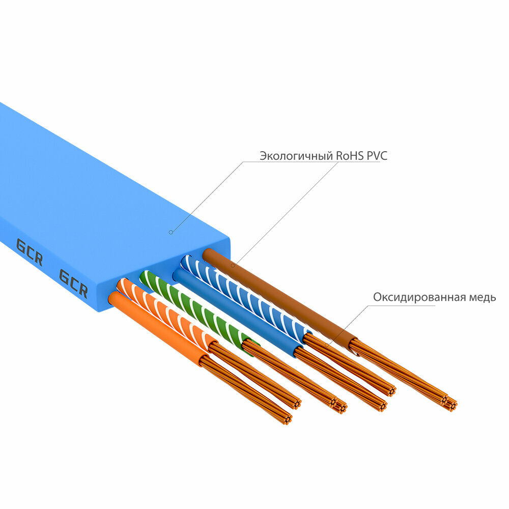 GCR Патч-корд PROF плоский прямой 15.0m, UTP медь кат.6, синий, 30 AWG, ethernet high speed 10 Гбит/с, RJ45, T568B