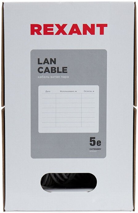 Кабель витая пара Rexant UTP 2PR, 24AWG, медь, CAT5e, бухта 305 м