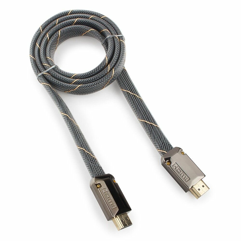 Кабель HDMI Cablexpert CC-P-HDMI04-1M, серия Platinum, 1 м, v2.0, M/M, плоский, позолоченные разъемы, металлический корпус, нейлоновая оплетка