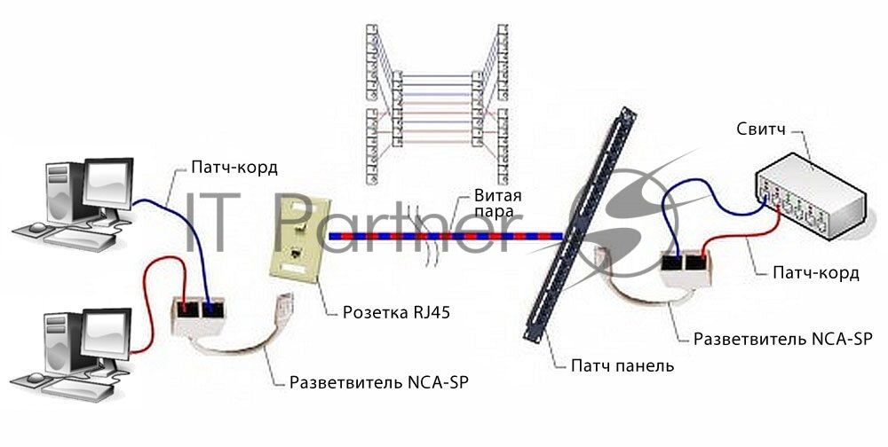 Разветвитель NCA-SP-01 A UTP 1 порт RJ45, T568A/T568B -> 2 порта RJ45 10/100 BASE-T