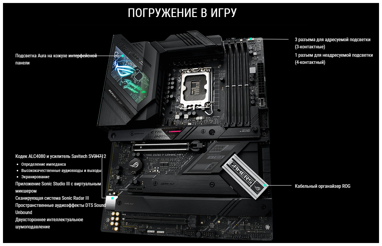 Ниже Вы можете прочитать отзывы на Материнская плата Asus ROG Strix Z690-F GAMING WIFI (LGA1700, ATX), ознакомится с подробными характеристиками, посмотреть интересные обзоры и фотографии на Материнская плата Asus ROG Strix Z690-F GAMING WIFI (LGA1700, ATX).