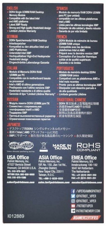 Ниже Вы можете прочитать отзывы на Память DDR 4 DIMM 16Gb PC21300, 2666Mhz, PATRIOT Viper 4 Elite ll CL16 (PVE2416G266C6) (retail), ознакомится с подробными характеристиками, посмотреть интересные обзоры и фотографии на Память DDR 4 DIMM 16Gb PC21300, 2666Mhz, PATRIOT Viper 4 Elite ll CL16 (PVE2416G266C6) (retail).