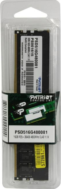 Память DDR5 16Gb 4800MHz Patriot PSD516G480081 Signature RTL PC5-38400 CL40 DIMM 288-pin 1.1В single rank Ret