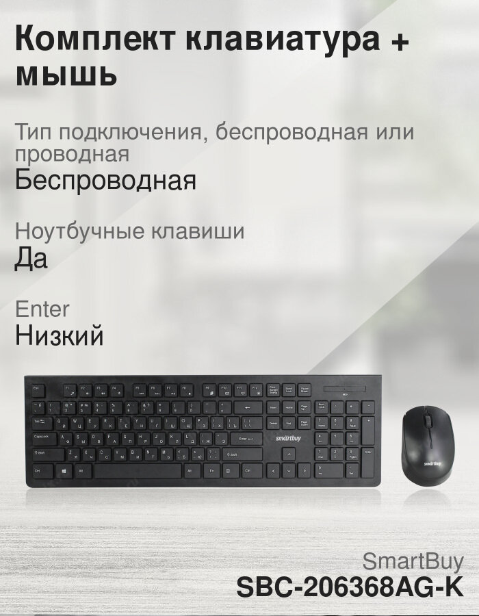 Клавиатура + мышь Smartbuy 206368AG-K черный, беспроводные (SBC-206368AG-K) /20 - 1 шт.