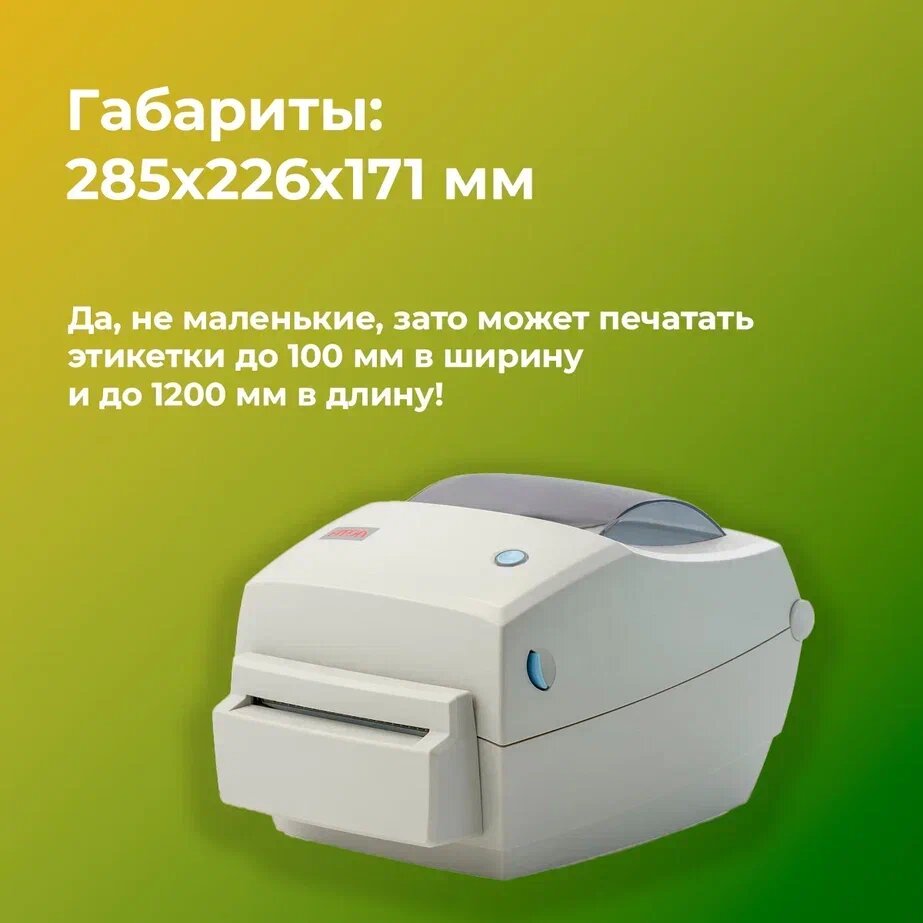 | Минусы: | Малофункциональный, требует настройки только специалистами от 3500?, печатает только до 5,8 см шириной (на маркетплейсы не подойдёт). |