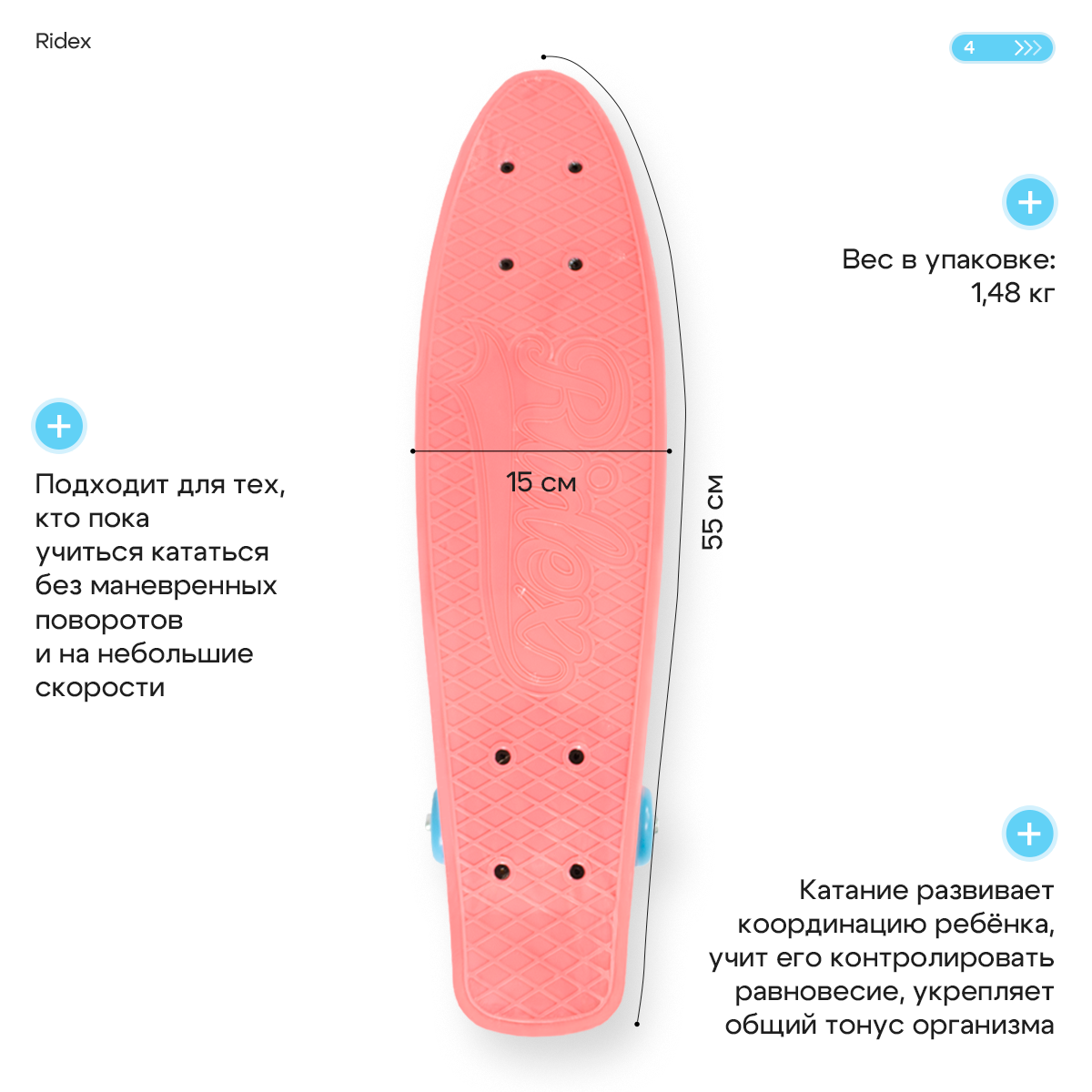 Круизер пластиковый RIDEX Fluffy 22''x6'' интересное: