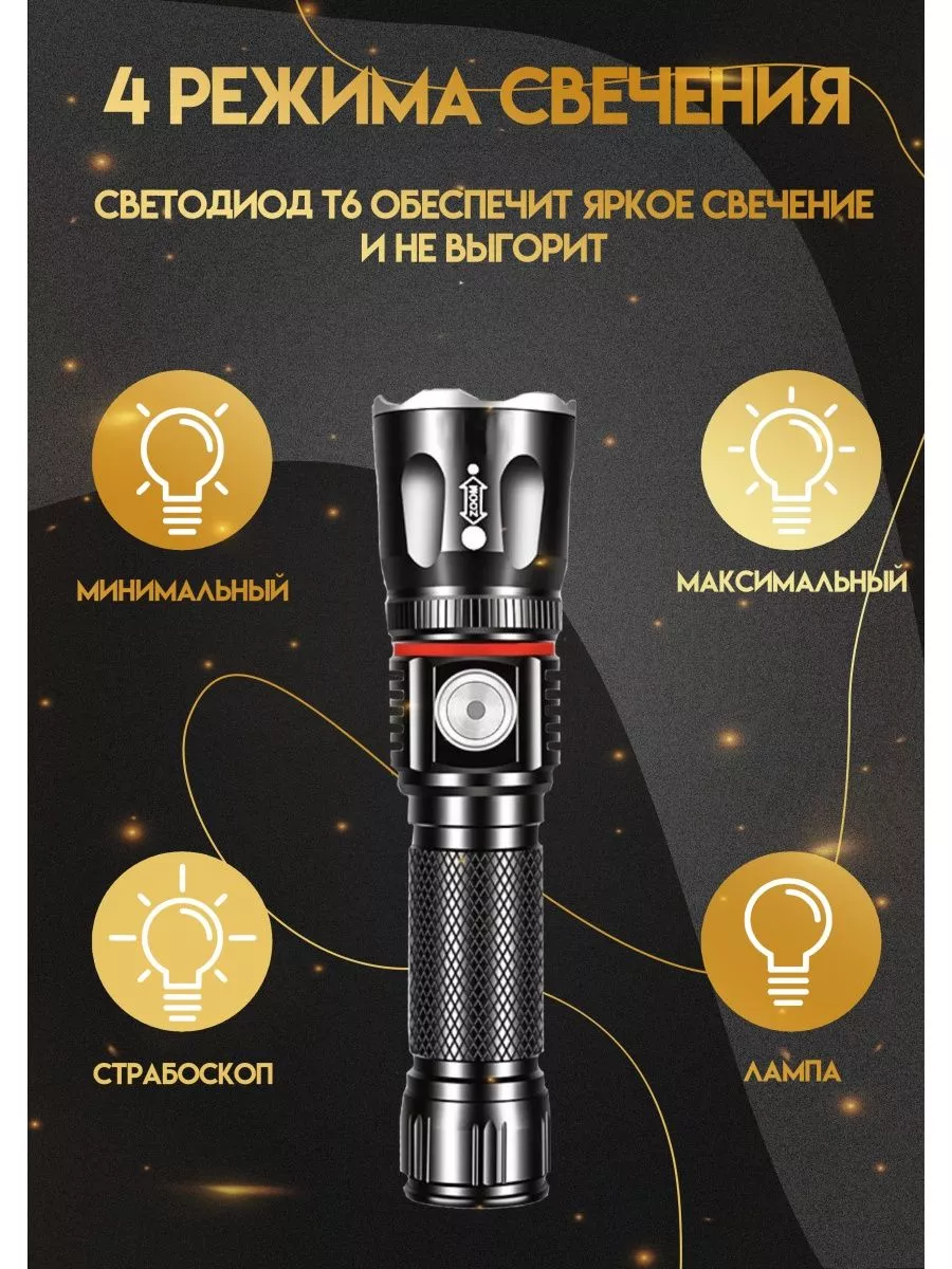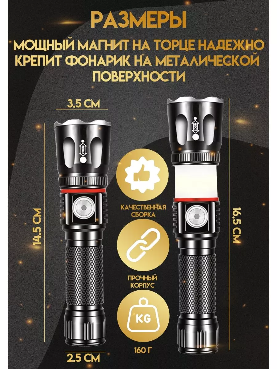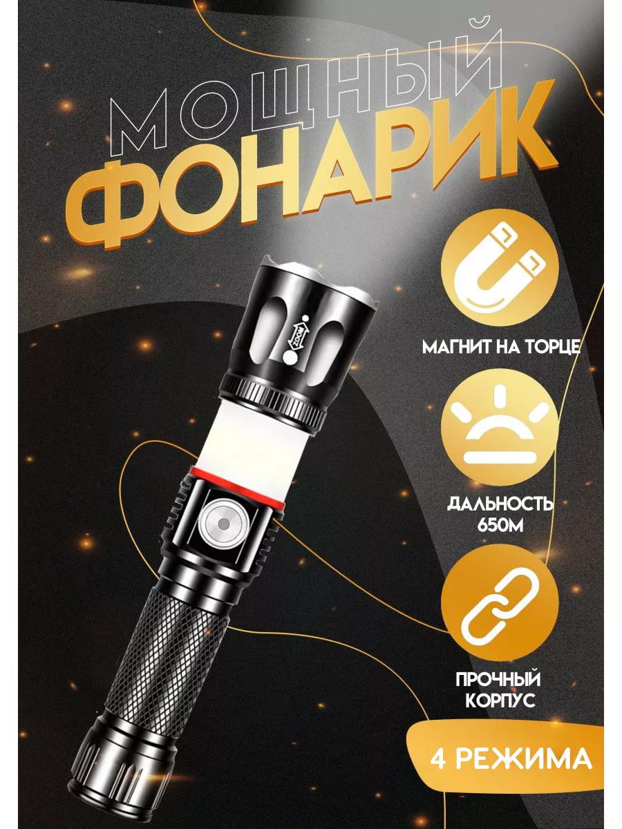 Фонарь мощный аккумуляторный светодиодный с функцией светильника и магнитом на торце (X-balog) интересное: