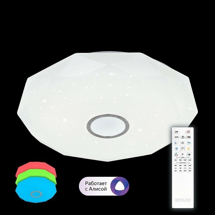 Свет Потолочный светильник светодиодный с пультом и управлением смартфоном регулировкой яркости и цветной температуры ночной режим Диамант Смарт CL713A100G RGB
