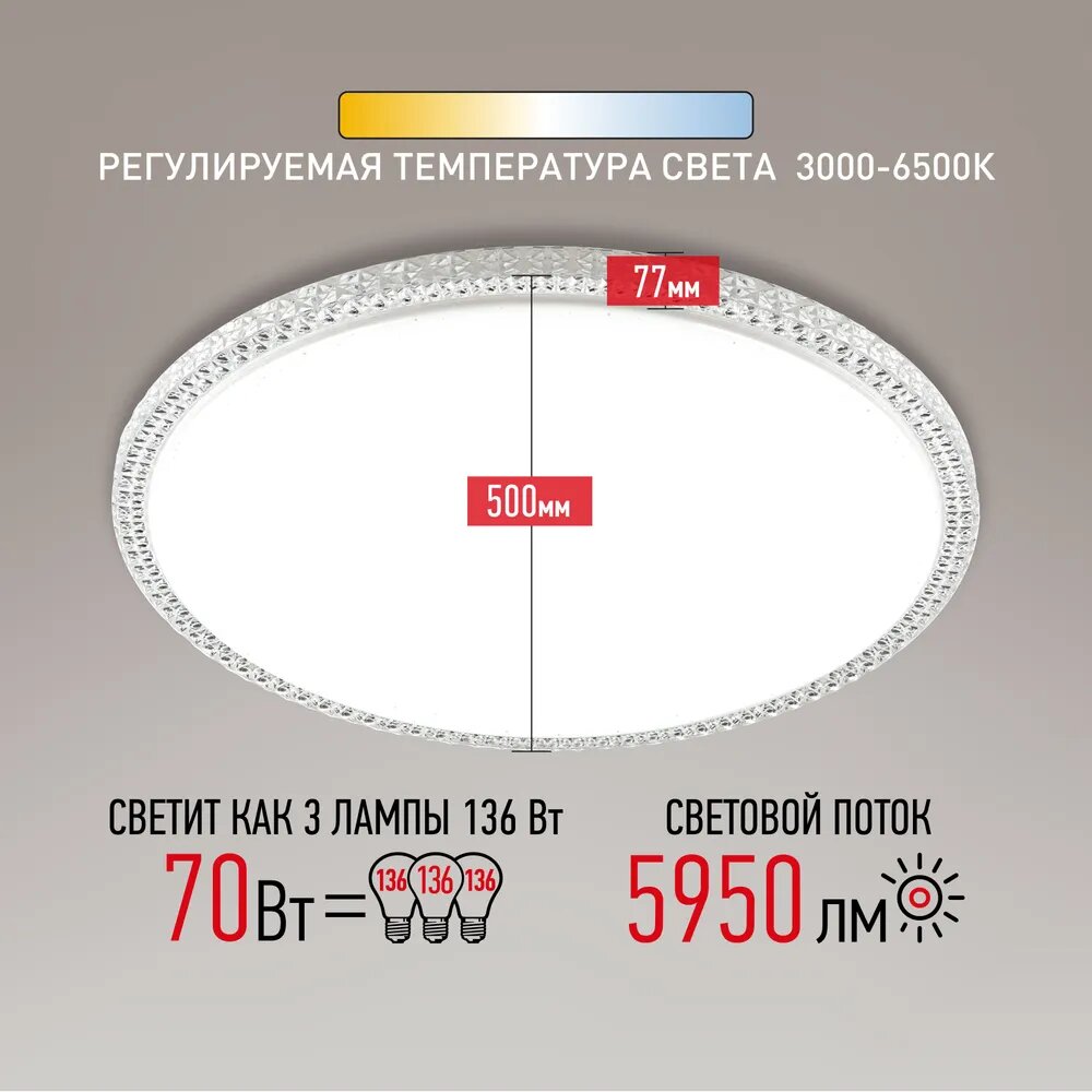 Светильник настенно-потолочный ЭРА 70Вт 5950 Лм 3000-6500К LED IP20 Б0036369 SPB-6-70-RC "Brilliance"