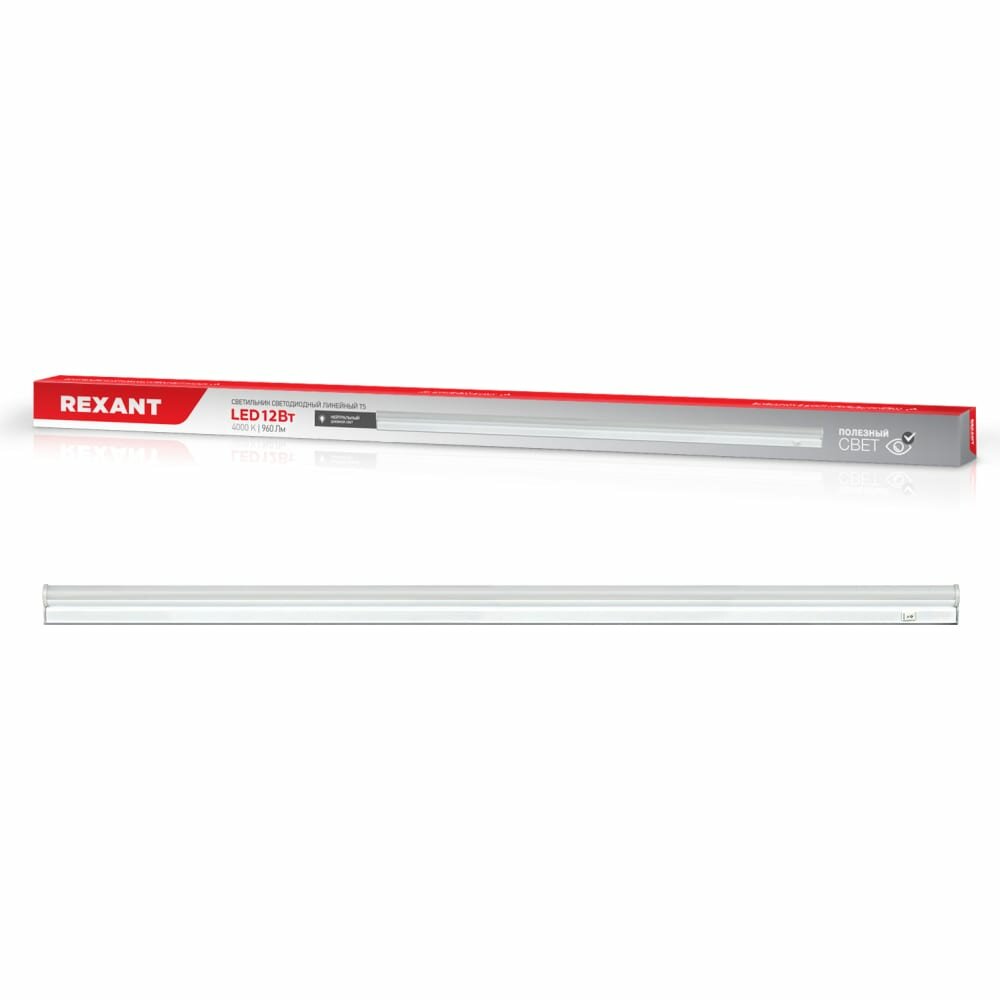 Светильник линейный Rexant T5 с выключателем и соединителем, длина 86.8 см, 12 Вт, 960 Лм, 4000 K, I