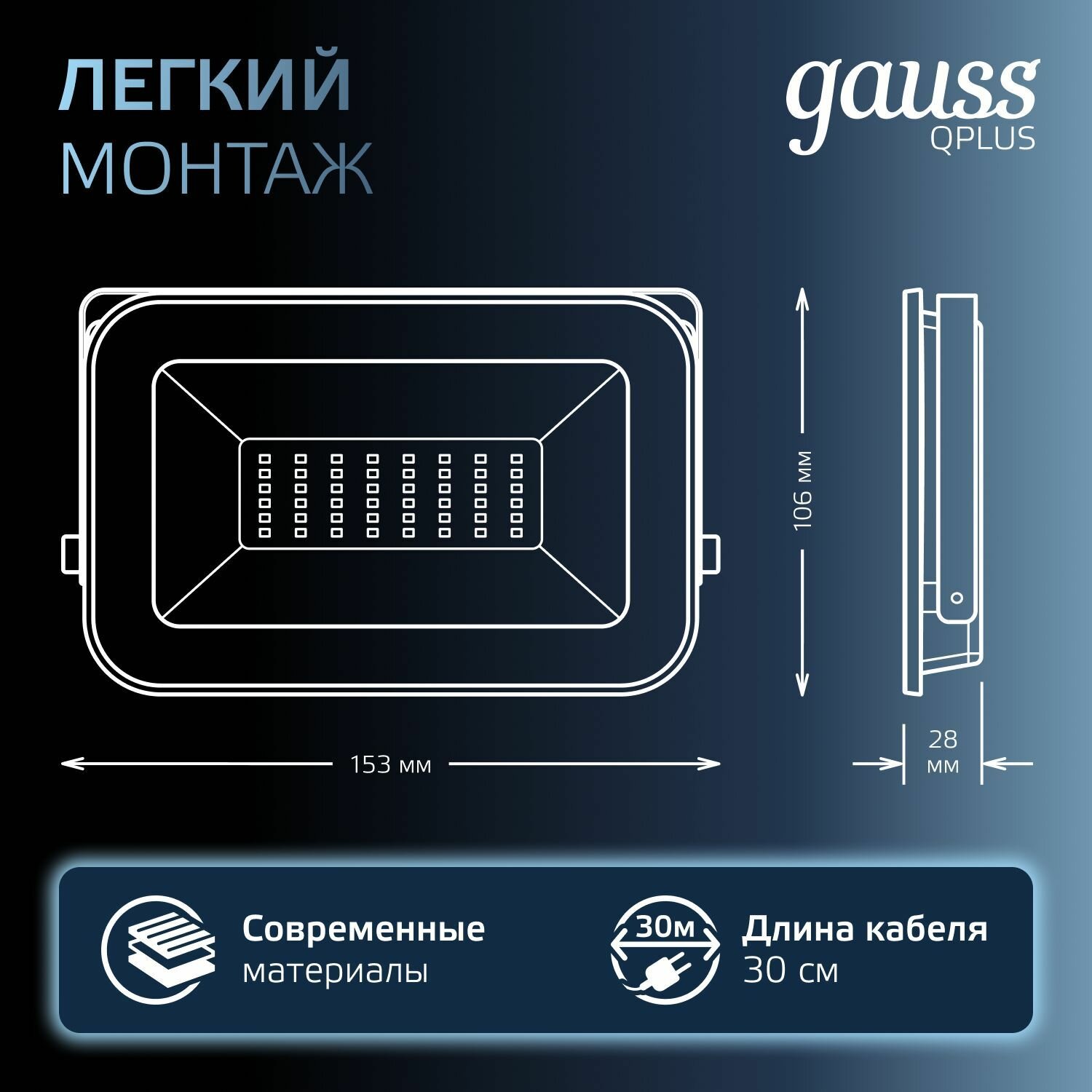 Прожектор светодиодный Gauss Qplus 690511330 30W 6500K IP65