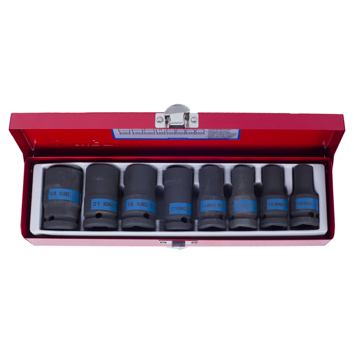 KING TONY Набор ударных торцевых головок 1/2", шестигранные, тонкостенные, 10-24 мм, 8 предметов 4413MP
