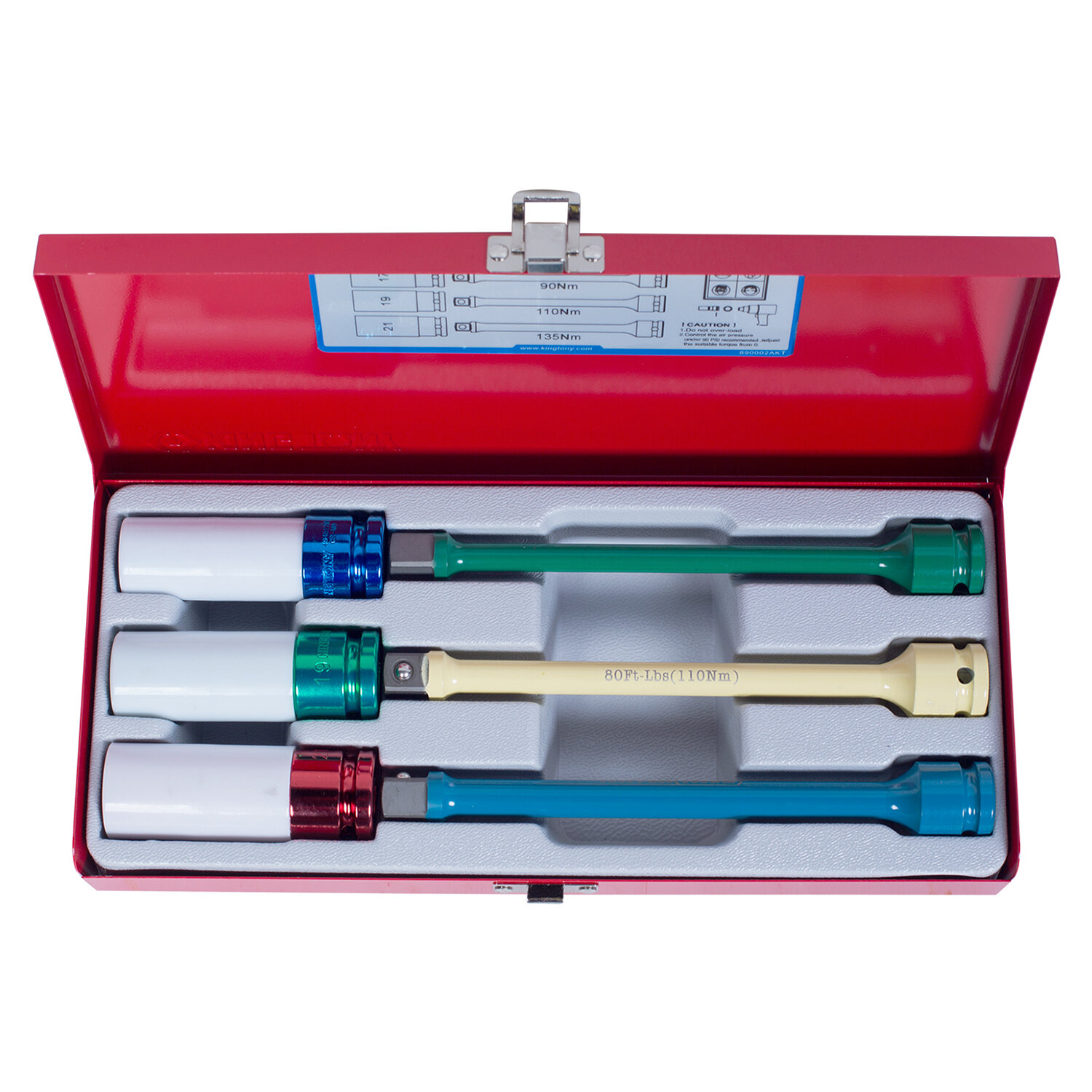 Комплект Глубоких Ударных Торцевых Головок 17-19-21 Мм И Удлинителей 90-110-135 Нм, 1/2" KING TONY арт. 4406MX