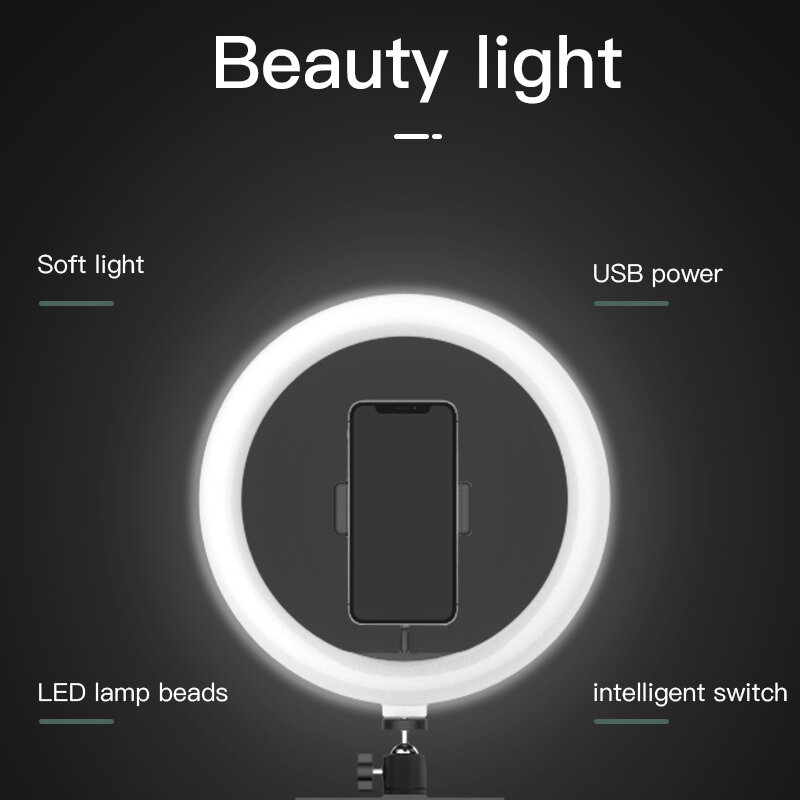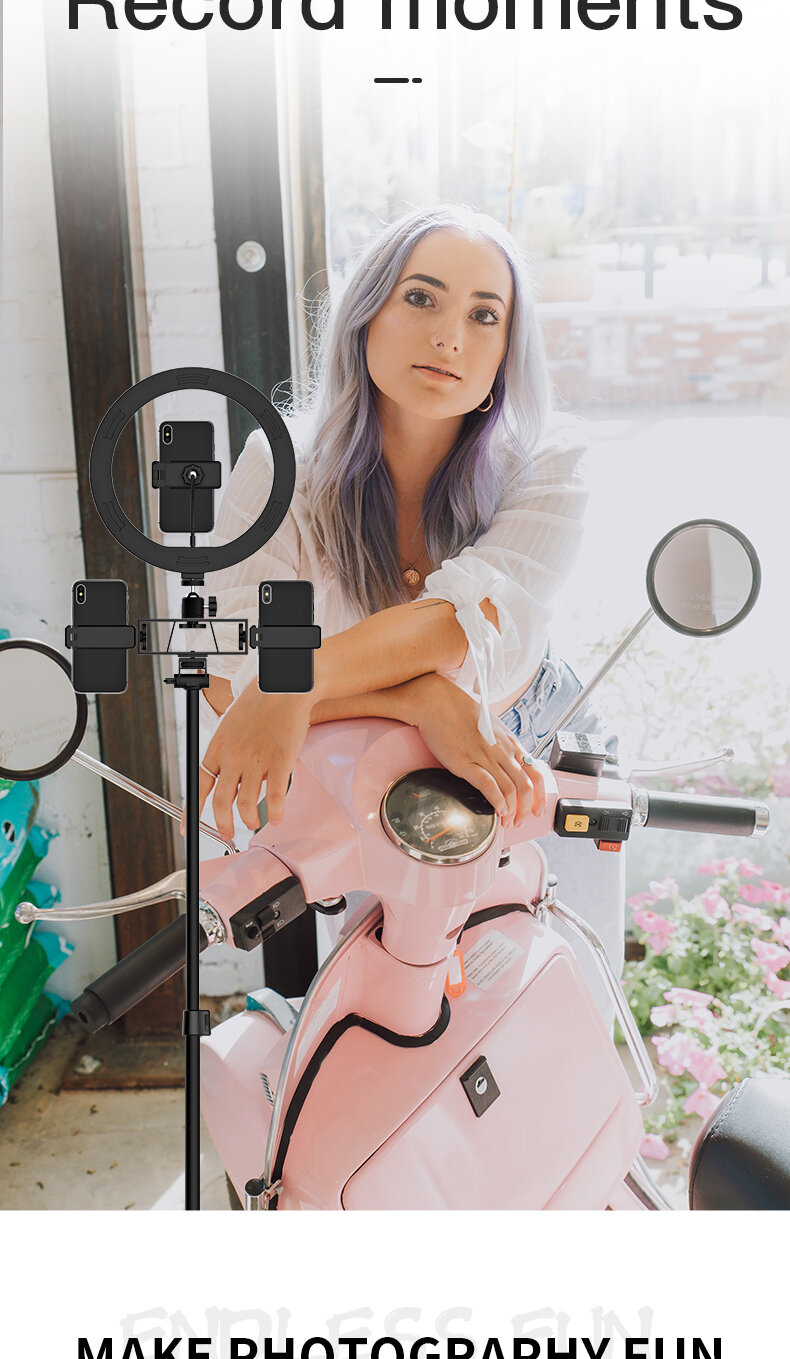 Кольцо-лампа для селфи JMARY FM-536A, с гибким кранштейном+подставка, USB, черный, зажим, пульт интересное: