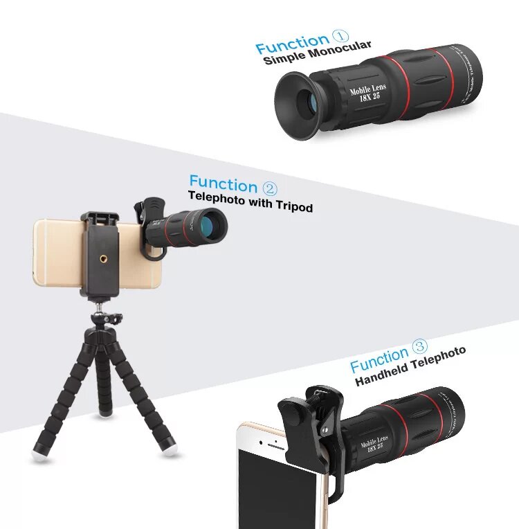 Комплект объективов Apexel 18x Telephoto 5-in-1 Kit для смартфона APL-T18XBZJ5 интересное: