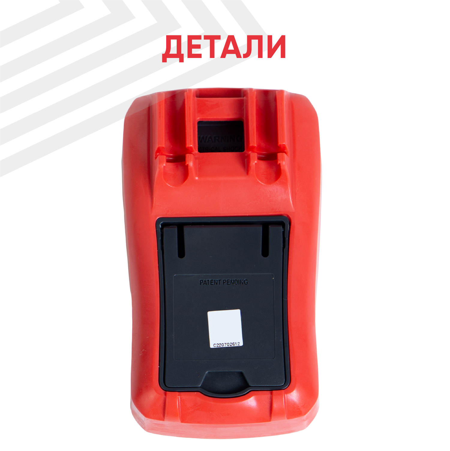 Батарейки уже установлены. Приятный мягкий чехол-бампер. В нем пазы для фиксации в нем наконечником проводов. Очень удобно в хранении и перевозке. Откидная подставка для установки в вертикальном положении. Подсветка. Кнопка фиксации показаний, если они нестабильны. Только а модели D+ есть функция поиска в стене скрытой электропроводки. (Раньше я встречал только отдельные приборы доя этой цели) |