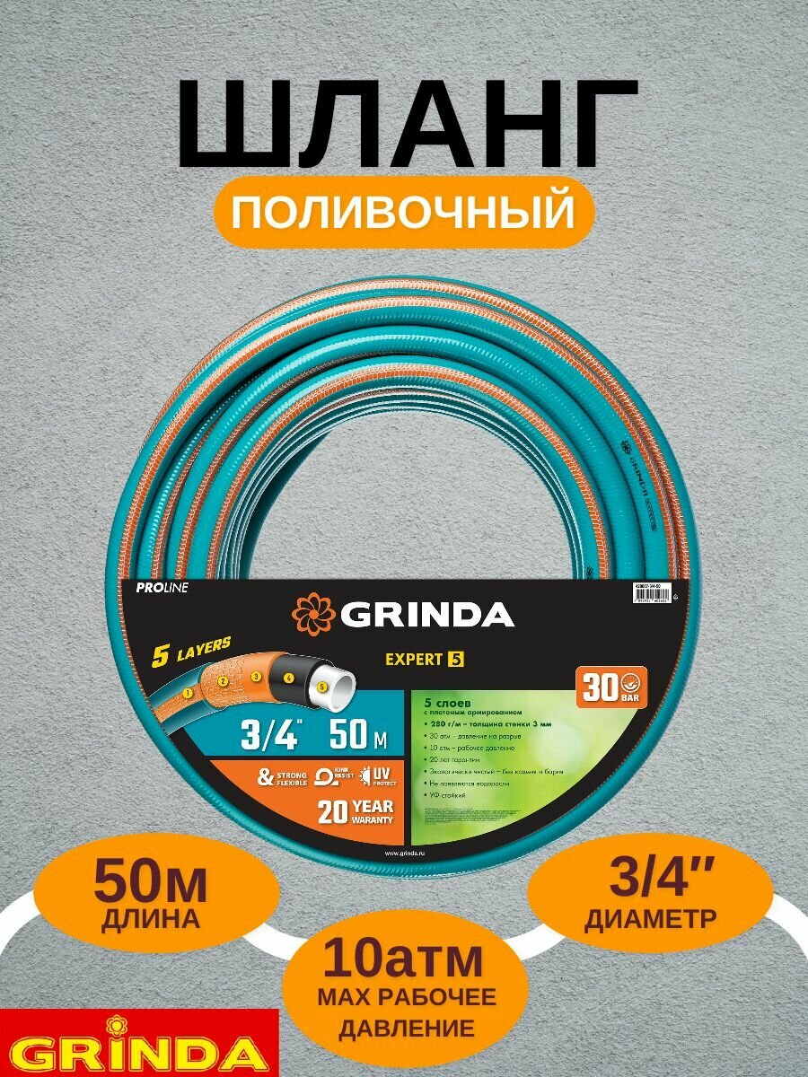 Grinda PROLine EXPERT 5 3/4 50 м, 30 атм, шланг поливочный, пятислойный 429007-3/4-50