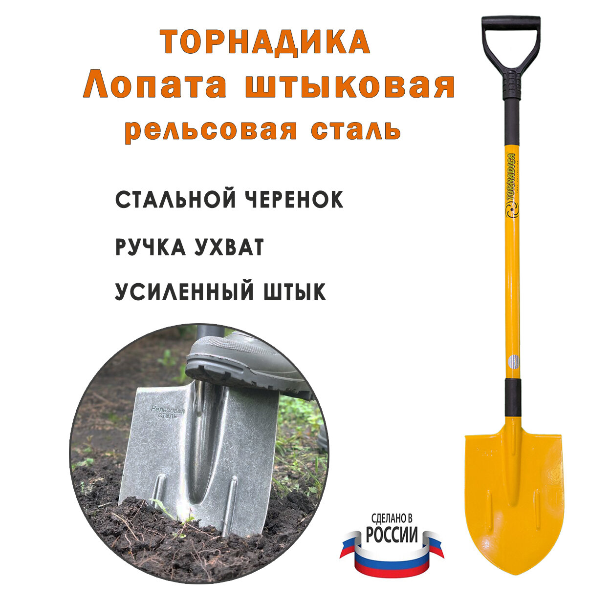 Лопата штыковая с черенком из рельсовой стали Торнадика / Штыковая лопата садовая / Лопата Торнадо посадочная