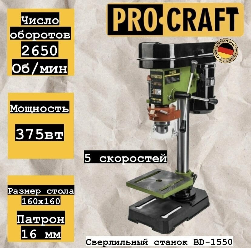 Сверлильный станок Pro-Сraft Professional BD1550. 375вт. 5 скоростей.